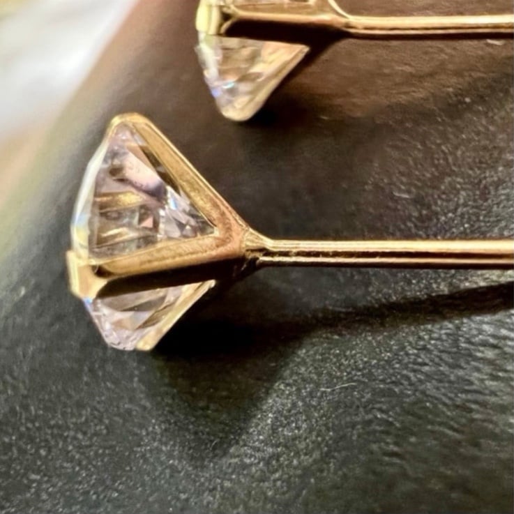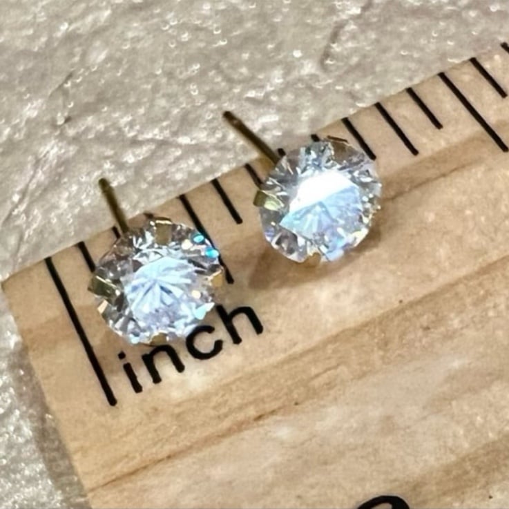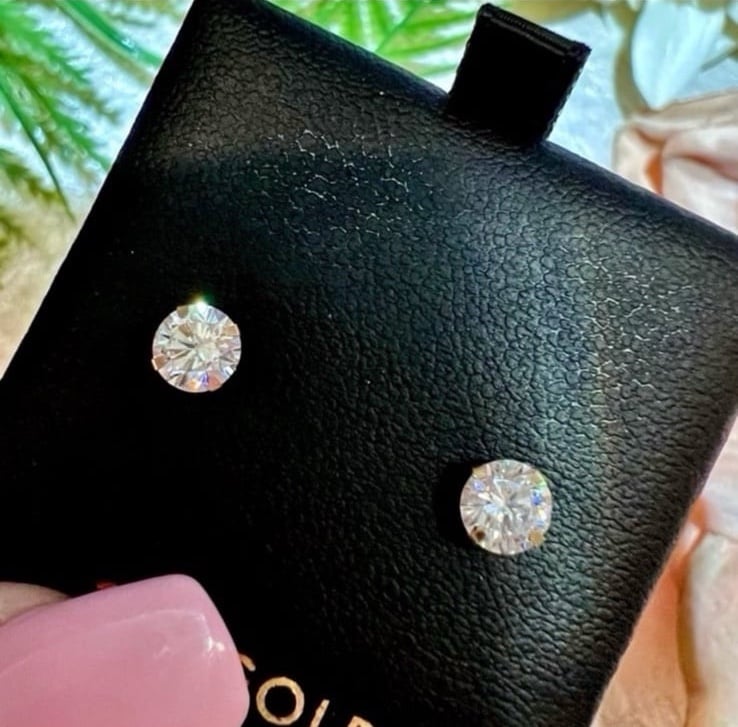 ➡️ New! Round Cut Diamond Studs set in Solid 10K Gold. Brand new 4 prong setting with beautifully cut round simulated diamonds. High quality cut stones for maximum sparkle and shine! Stones are about 4mm each. Backs are very comfortable and easy to put on. Perfect gift for Valentine’s Day! Great for everyday.