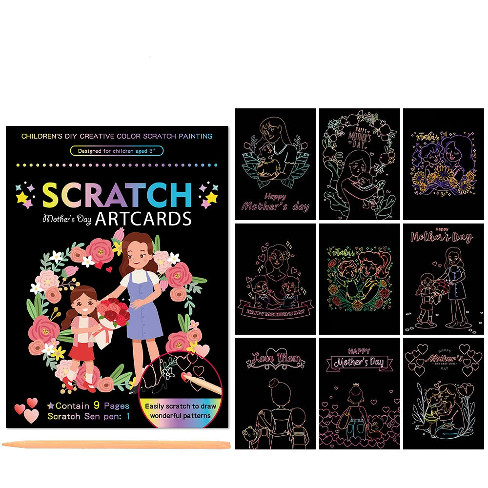 Product packaging: in opp bags, each set includes 9 pieces of scratch paper and 1 piece of scratch bamboo stick