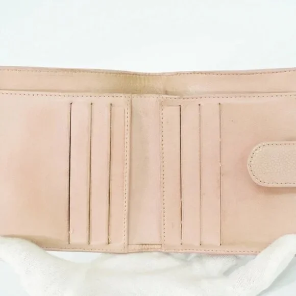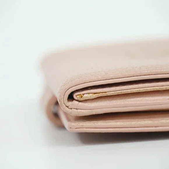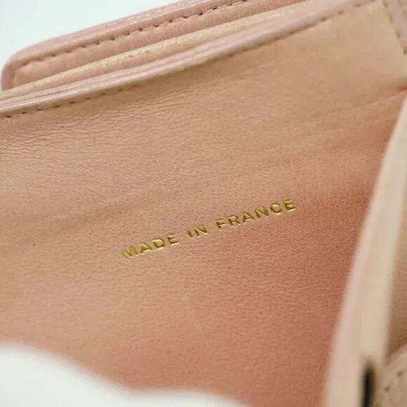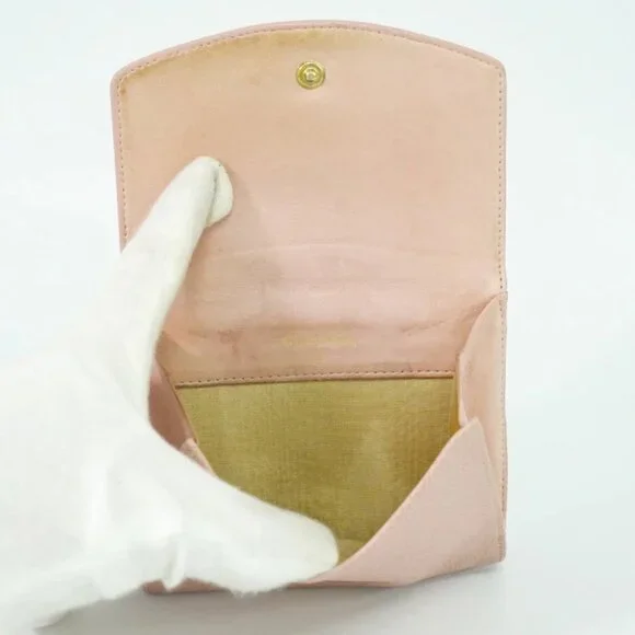 Brand: CHANELGuarantee Seal Number: 8516418Color: Pink, Gold hardwareMaterial: LeatherComes with: NONECountry of Manufacture: FranceAPPROX MEASUREMENTSize in cm: W 11 x H 10 x D 2 cmSize in inch: W 4.33 x H 3.93 x D 0.78 inchCONDITION DESCRIPTIONCondition Rank: Outside AB / Inside B / Pocket BOdor: Storage Odor.Comments: Wear. Discoloration. Fraying.Condition ChartS: [NEW / UNUSED] No Odor. No missing pieces.SA: [MINT] Unused or Displayed items.A: [EXCELLENT] Used but No significant damage or just slight flaws.AB: [GOOD] General Used condition. May have these damages: Scratches, Stains, Rubs, Discoloration, Darkening, Tiny Cracks, A little Tear, Loose shape, (Leather: Suntan, Water Marks, Darkening / Hardware: Scratches, Peeling, Discoloration, Tarnish).B: [USABLE] More Defects than AB rank and Very Worn Out. May have More Stains, Cracks, Tear and some other noticeable damages, but still can be used.BC: [POOR] Very Damaged. Noticeable Defects.C: [JUNK] Can NOT be used, Need Repair for use.